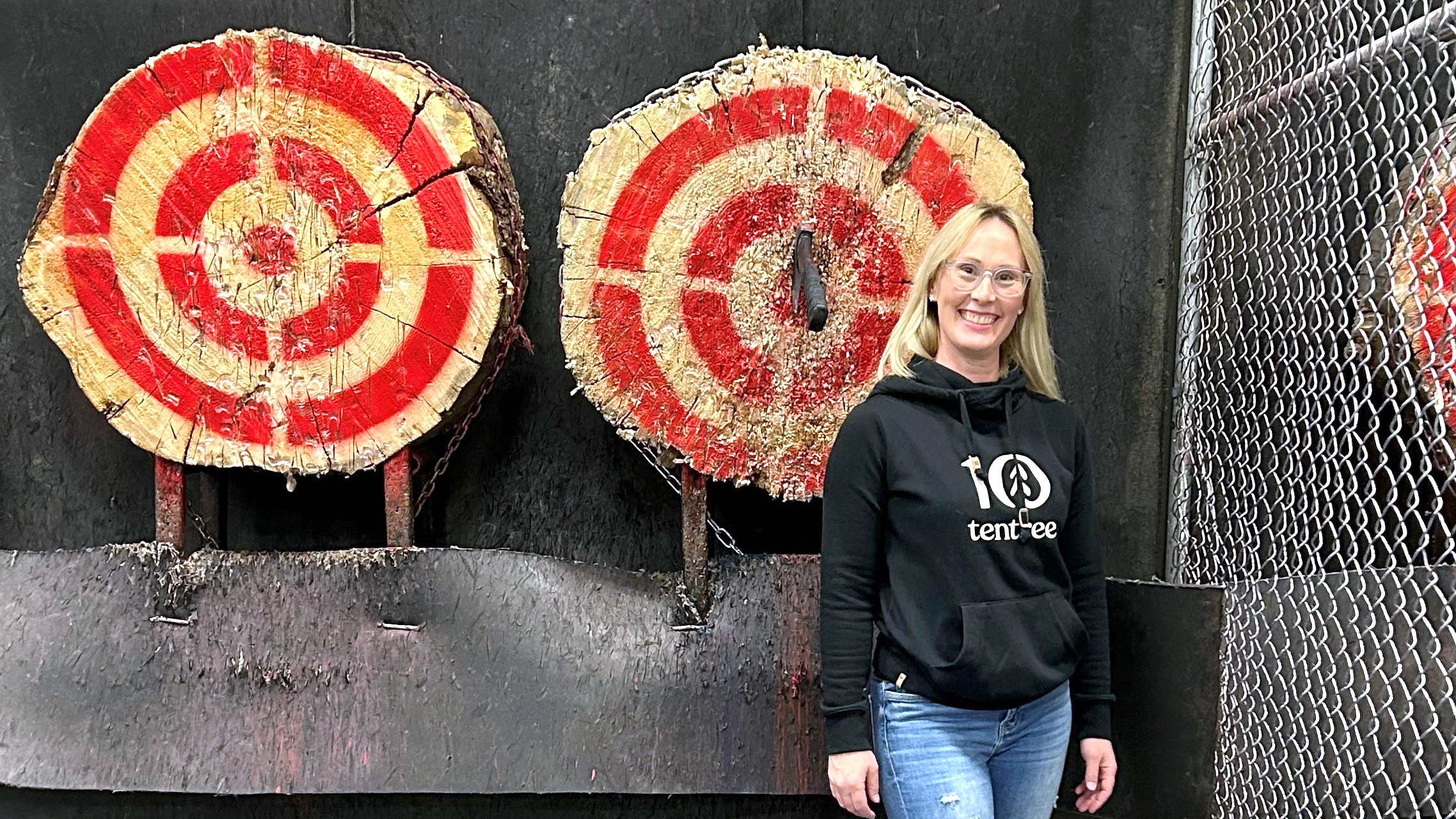 Jody Lutz, provincial rural nursing education coordinator, has been known to hurl an axe or two for recreation. Photo supplied.