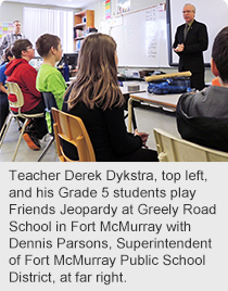 Derek Dykstra teaches the Friends program to his Grade 5 class at Greely Road School. Intended for children ages 8 to 10 — and taught in Grade 5 classrooms throughout Fort McMurray — Friends delivers positive mental health messages and strategies to help youngsters build strong self-esteem and coping mechanisms.
